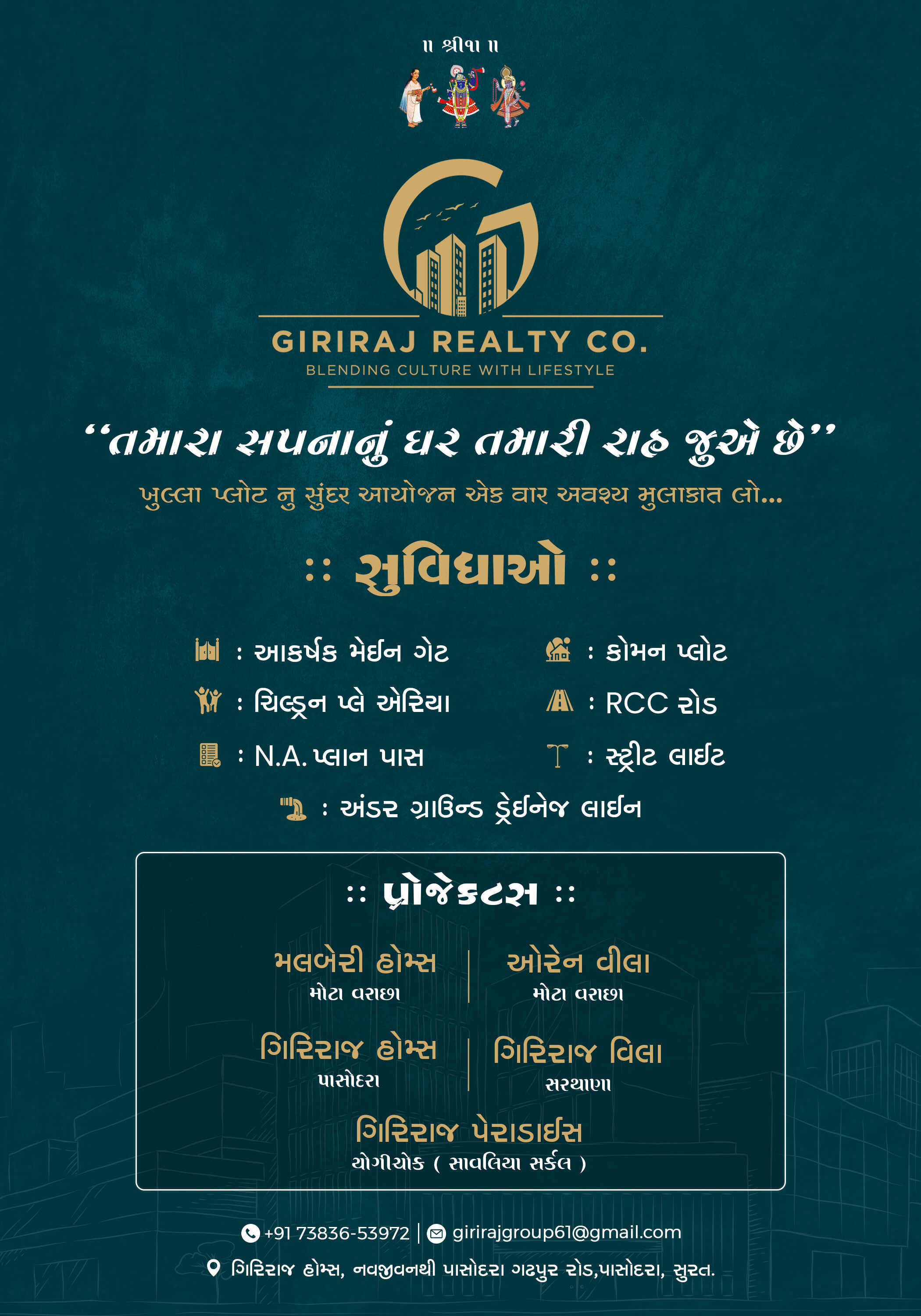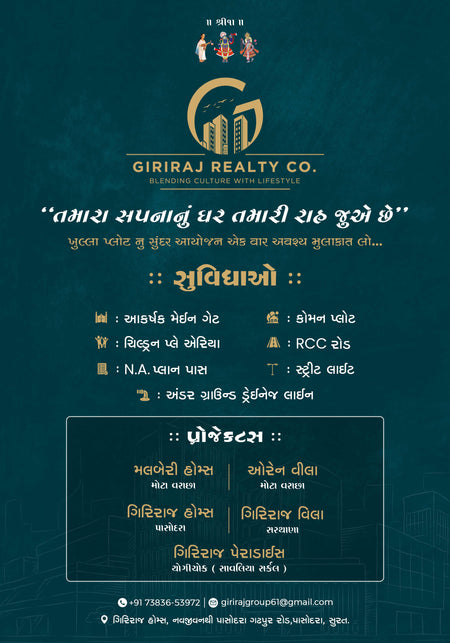Transform your real estate marketing with our stunning custom-designed property posters! This promotional design highlights the exceptional features and amenities available with the plots offered by Giriraj Realty Co. Whether you're looking for spacious residential plots or affordable investment options, our posters are tailored to showcase the true potential of each property, with high-quality visuals and compelling design elements that grab attention. Let us help you create a lasting impression with our professional, high-impact property posters.